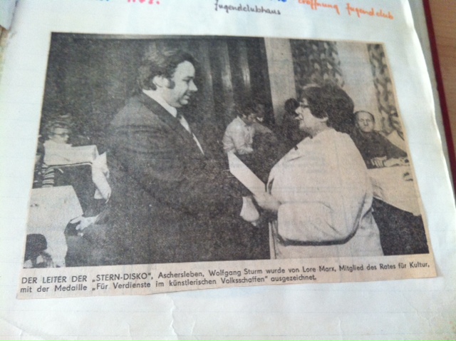 Der Chronik der "Stern-Disko" zu entnehmen fanden unter der Leitung von Wolfgang Sturm 2086 Veranstaltungen in den Jahren von 1974 bis 1990 statt. Neben der Tätigkeit als Diskjockey der Stern-Disko war er auch noch als Leiter der Kreisarbeitsgemeinschaft tätig und organisierte Weiterbildungen aller Diskotheken im Umkreis. Hierfür erntete er die erste Auszeichnung "Hervorragendes Volkskollektive" am 21.11.1980 und die 2. im Oktober 1982 mit einer Medaille für "Verdienste im künstlerischen Volksschaffen" vom Rate für Kultur.